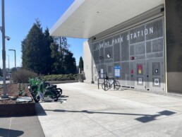 Last month, Sound Transit recently opened the Crosslake Connection, extending light rail across a floating bridge (a world first!) across Lake Washington and introducing two new transit stations connecting Seattle and Bellevue. In partnership with the City of Seattle, King County, and Lime they made sure that shared micromobility parking was ready on day one. Leveraging learnings from their innovative Bike and Scoot to Transit pilot, they were able to rapidly put together signage, ground treatment (including stencils), and a software geofence to manage parking for shared bikes and scooters.